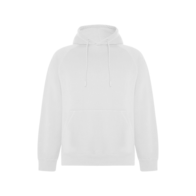 Sudadera con capucha Unisex en Algodón Orgánico Peinado y Poliéster Reciclado. Bolsillo Canguro. Capucha forrada de punto liso y cordones redondos ajustables , ojales bordados. cuello puños y cinturilla de punto canalé 2x1.