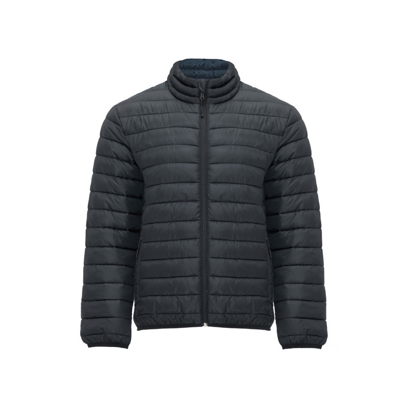 Chaqueta de hombre acolchada con relleno tacto pluma. ·Cremalleras invertidas a tono con protector de barbilla y tirador. ·Dos bolsillos frontales con cremalleras. ·Ribete elástico a tono en puños y bajo. ·Forro interior a contraste. ·Prenda ligera y plegable