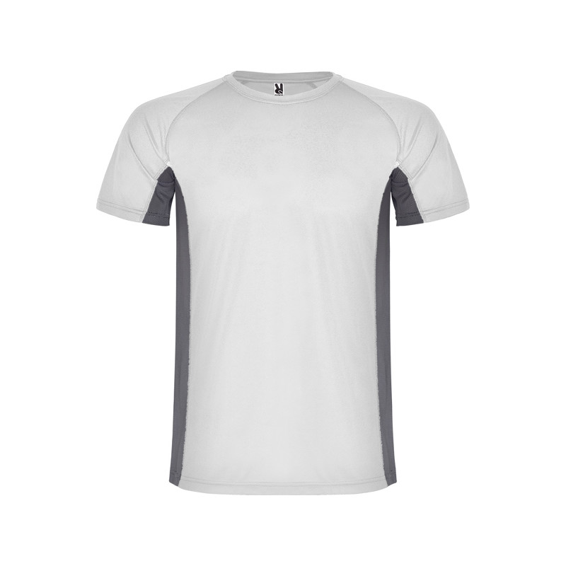 Camiseta técnica combinada con dos tejidos de poliéster, manga corta de estilo ranglán. Tejido principal bird's eye y paneles laterales e interior de la manga con tejido micro perforado. Cuello redondo con cubrecosturas de refuerzo en su interior. Camiseta de tejido confortable y fácilmente adaptable al cuerpo.