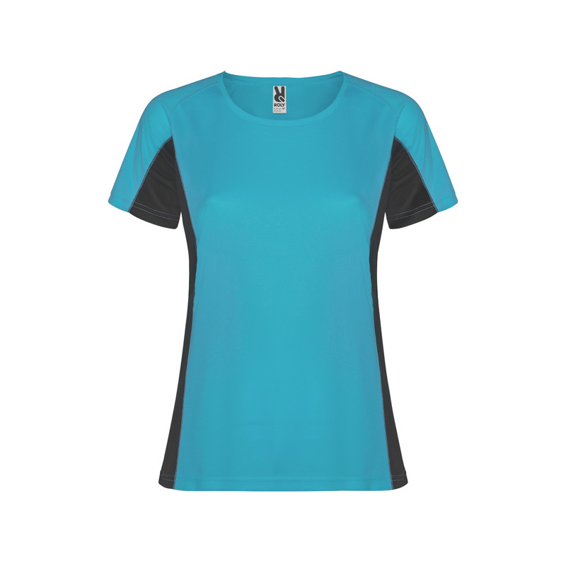 Camiseta técnica combinada con dos tejidos de poliéster, manga corta de estilo ranglán. Tejido principal bird's eye y paneles laterales e interior de la manga con tejido microperforado. Cuello redondo con cubrecosturas de refuerzo en su interior. Camiseta de tejido confortable y fácilmente adaptable al cuerpo.