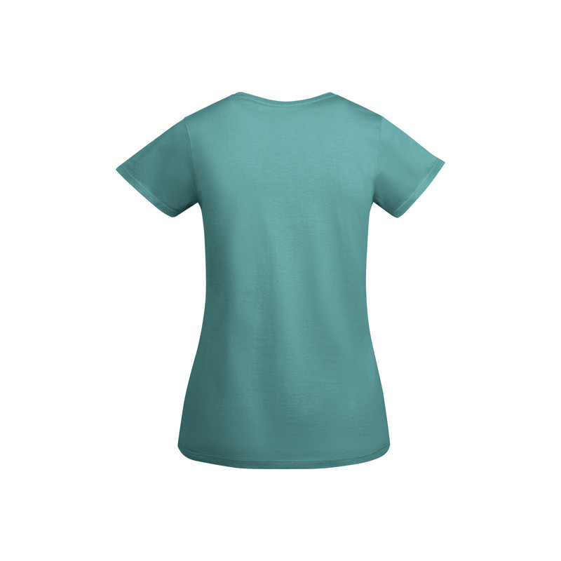 Camiseta de mujer entallada de manga corta en algodón orgánico certificado OCS. Cuello redondo en canalé 1x1. Cubrecosturas reforzado en cuello. Costuras laterales.