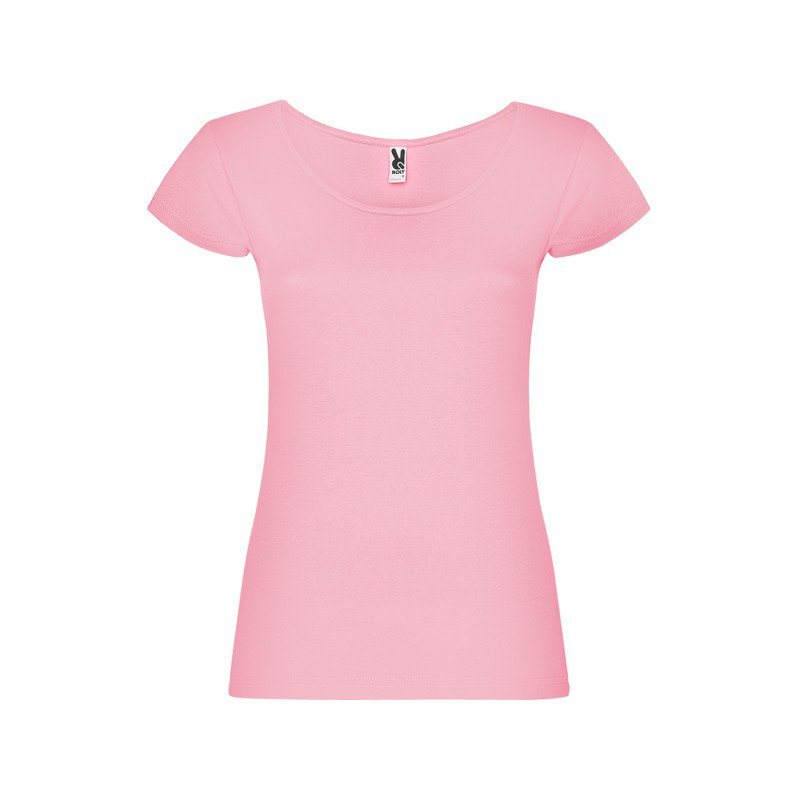 Camiseta de manga corta, escote redondo, ribeteado y pronunciado. Costuras laterales y de corte ajustado.